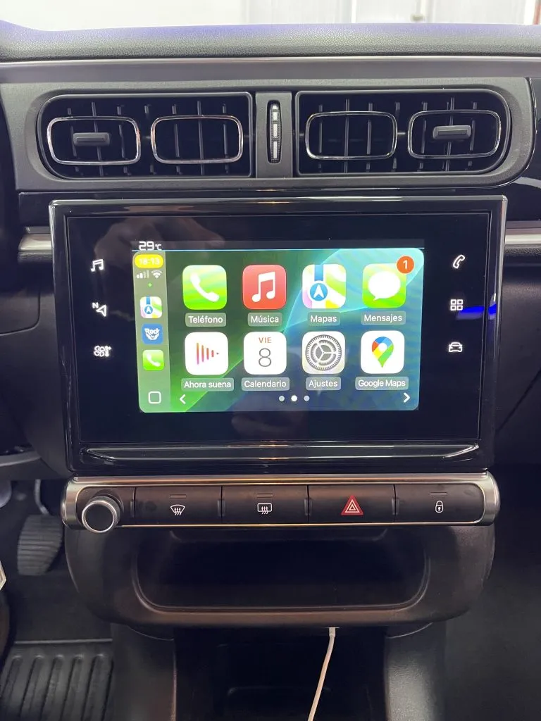 CarPlay, volante multifuncional, llantas de aleación, pantalla digital a color táctil, sistema de frenos ABS, luces diurna led, control de crucero, dirección asistida, airbags, sistema de audio: Radio AM/FM, MP3, conector 12v, indicación de presión de neumáticos, cierre centralizado, retrovisores eléctricos, control electrónico de tracción, encendido automático de luces, volante regulable en altura, climatizador bizona, control de estabilidad, luces antiniebla, elevalunas eléctricos delanteros, ordenador de abordo, kit de manos libres bluetooth, etc.